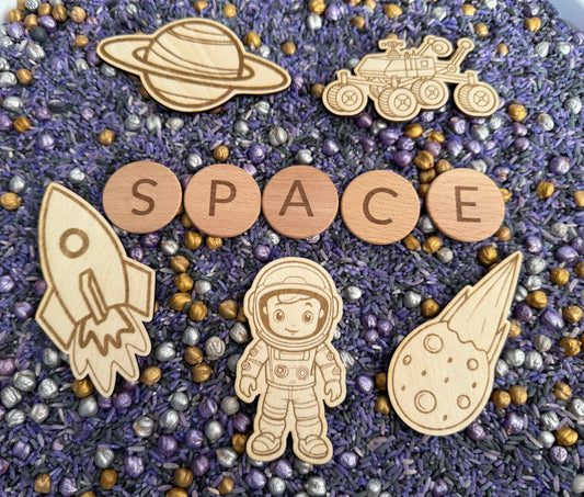 Customizable Wooden Astronaut, Moon, Cloud : Space Stacking Toy