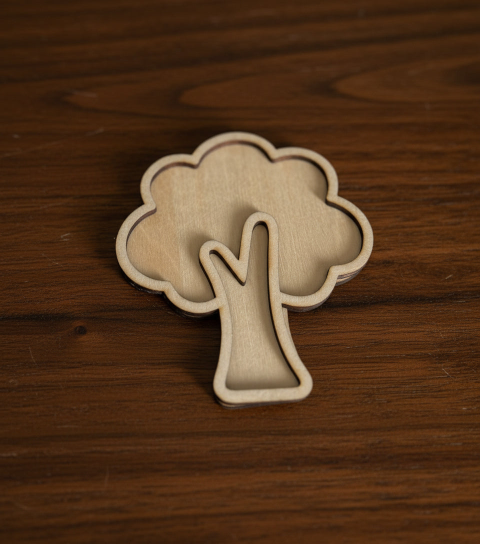 Made with 3mm thick plywood. All items are two layers meaning 6mm thick.