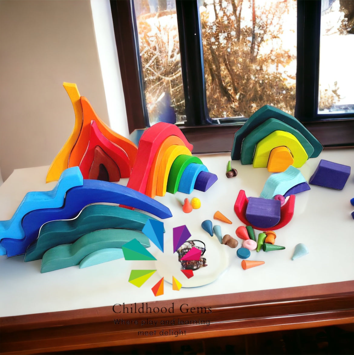 This set is perfect for toddlers and children, inspired by the open play toys used in Waldorf and Montessori schools. It makes a thoughtful gift for any young child.