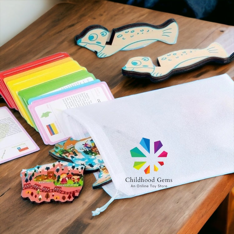 LARGE Wooden Magnetic World Map For Kids With Country Flash Cards (92) & National Flag CT