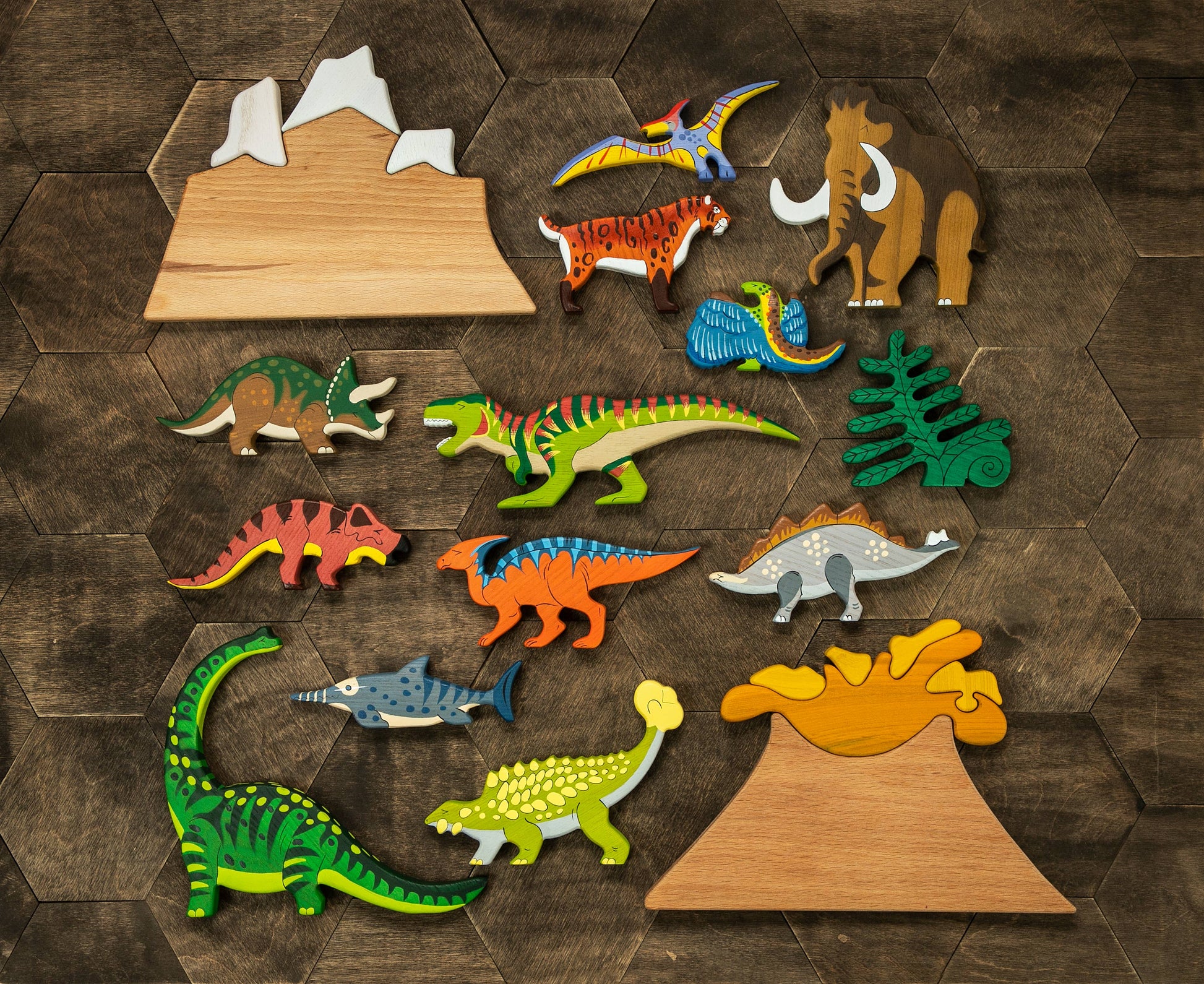 Volcano Wooden Puzzle toy Dinosaurs Playset